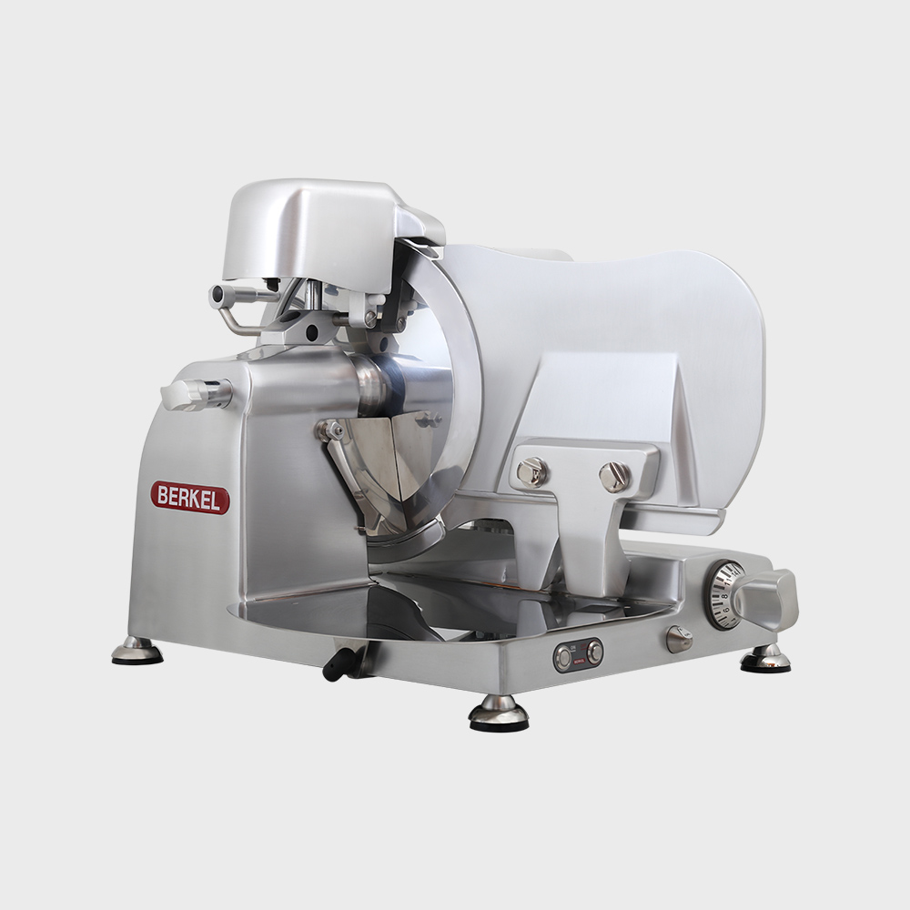 Berkel Suprema Macelleria è dotata di doppio piatto portamerce di grandi dimensioni che consente un contenimento ottimale del prodotto da tagliare, completamente aperto sui fianchi e sollevabile per favorire una perfetta igienizzazione. Paragrasso lungo per un appoggio ottimale della carne fresca che è accompagnata per tutta la lunghezza del taglio. Pressamerce in acciaio inox con costolature tagliate al laser e studiato per rimanere sollevato in totale sicurezza durante il posizionamento del prodotto. I componenti più difficili da pulire sono completamente asportabili, costruiti in acciaio inox e lavabili in lavastoviglie. Incredibile fluidità di movimento del carrello che scorre su una barra in acciaio cromato, rettificata e dotata di bussole teflonate e feltri autolubrificanti.