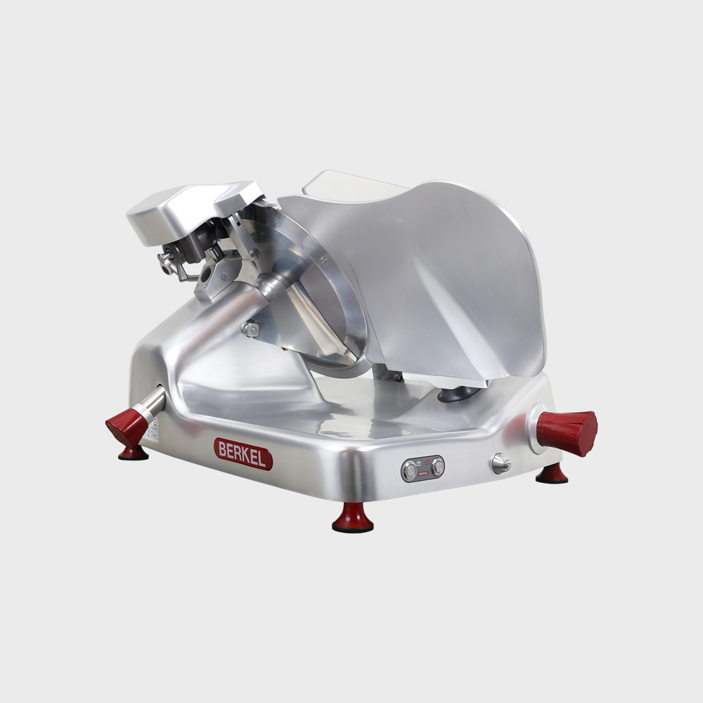 L'affettatrice elettrica a ingranaggi studiata da Berkel per facilitare i professionisti del settore. Il desiogn innovativo dagli spigoli arrotondati nascondono un cuore di potenza e precisione.