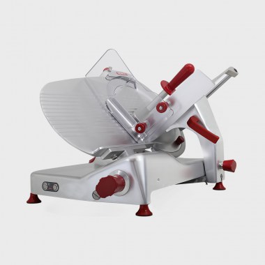 Affettatrice robusta con grande capacità di taglio pensata per minimizzare lo sforzo dell'operatore. La precisione della lama e motori affidabili per un lavoro continuativo e intenso permettono un importante risparmio sui costi di gestione della vostra attività.