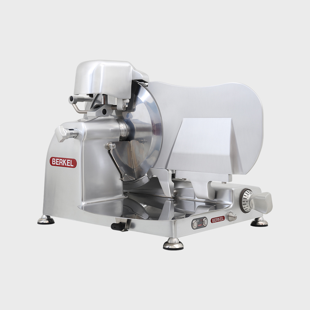 Affettatrice per prosciutto, salumi stagionati e pregiati. Parafetta, sovrapiatto portamerce e pressamerce, sono facilmente smontabili, costruiti in acciaio inox e lavabili anche in lavastoviglie. Il robusto pressamerce con costolature tagliate al laser sostituisce le tradizionali puntine e permette una tenuta salda del prodotto da tagliare. La forma del pressamerce permette di arrivare a tagliare davvero fino all'ultima fetta e questo aiuta a minimizzare gli scarti contribuendo al risparmio sui costi di gestione della vostra attività. Linee morbide, nessun angolo difficile da raggiungere, ampi spazi per igienizzare velocemente e senza difficoltà.