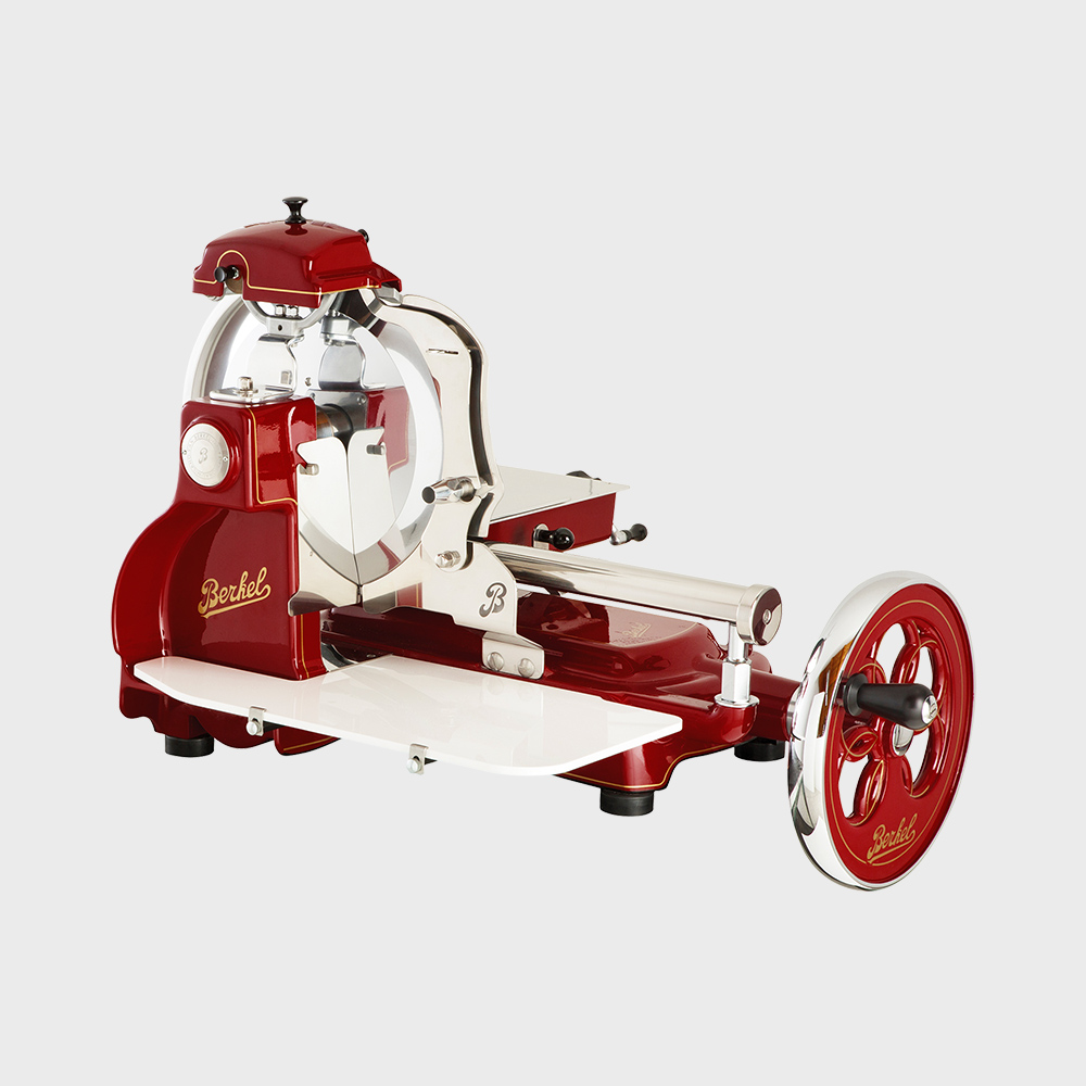 Berkel B3, l'affettatrice a volano ideale anche per un taglio intensivo, è una macchina professionale ad uso domestico. Il design di una macchina d'epoca, costruita ancora in modo artigianale, fa rivivere nelle case dei più raffinati la storia delle affettatrici Berkel, le affettatrici per eccellenza.