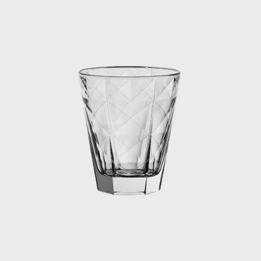 Ciò che rende distintivo questo bicchiere è la particolarità delle sue linee, che sembrano disegnare il taglio di una pietra preziosa sul vetro. Ulteriore tocco d'originalità è dato dalla sua base esagonale.