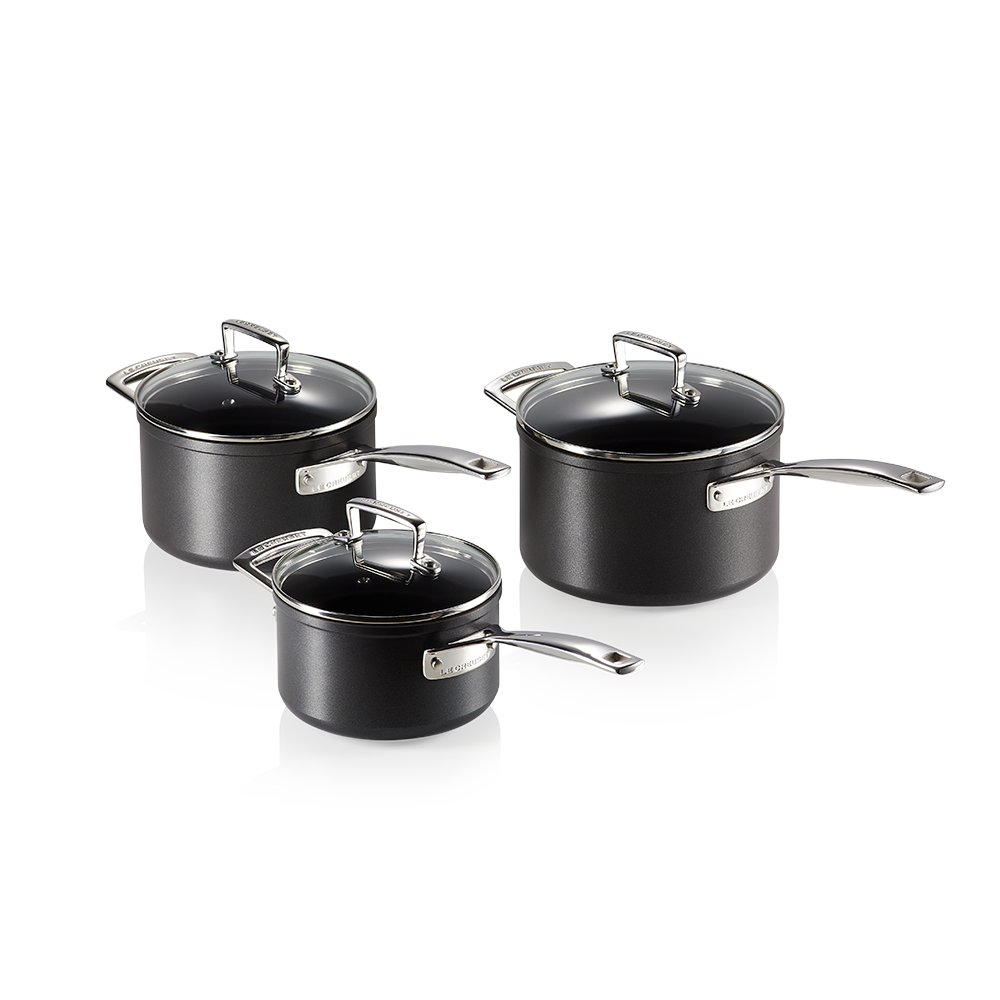 Batteria 3 Casseruole con manico lungo,maniglia e coperchio 16,18,20cm / Prodotti di alta qualità Le Creuset, leader nel settore delle cocotte in ghisa smaltata e alluminio