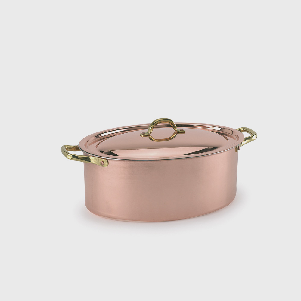 Pentolame: Casseruola ovale con coperchio rame cm 30