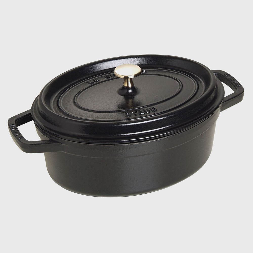 Cocotte nero 27 cm / Preparare un saporito stufato in casa può essere complicato. Per ottenere grandi risultati con il minimo sforzo, utilizzate il pentolame staub della serie la cocotte. La cocotte è fatta di ghisa smaltata dalle eccellenti proprietà termiche. Il calore è rilasciato in modo uniforme in tutta la pentola, per garantire l'omogeneità delle temperature di cottura. La cocotte può essere utilizzata su tutti i tipi di piano cottura e di forno. L’interno smaltato intensifica la cottura lenta facendo risaltare i naturali sapori delle pietanze e creando piatti perfetti e aromatici. La cocotte è fatta in ghisa, un materiale robusto e di facile manutenzione, ed è dotata di pratici manici di ghisa e di un coperchio con un pomello.
