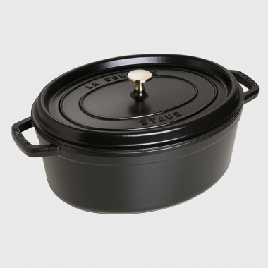 Cocotte nero 33 cm / Preparare un saporito stufato in casa può essere complicato. Per ottenere grandi risultati con il minimo sforzo, utilizzate il pentolame staub della serie la cocotte. La cocotte è fatta di ghisa smaltata dalle eccellenti proprietà termiche. Il calore è rilasciato in modo uniforme in tutta la pentola, per garantire l'omogeneità delle temperature di cottura. La cocotte può essere utilizzata su tutti i tipi di piano cottura e di forno. L’interno smaltato intensifica la cottura lenta facendo risaltare i naturali sapori delle pietanze e creando piatti perfetti e aromatici. La cocotte è fatta in ghisa, un materiale robusto e di facile manutenzione, ed è dotata di pratici manici di ghisa e di un coperchio con un pomello.