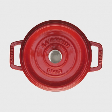 Cocotte rosso ciliegia 20 cm / Preparare un saporito stufato in casa può essere complicato. Per ottenere grandi risultati con il minimo sforzo, utilizzate il pentolame staub della serie la cocotte. La cocotte è fatta di ghisa smaltata dalle eccellenti proprietà termiche. Il calore è rilasciato in modo uniforme in tutta la pentola, per garantire l'omogeneità delle temperature di cottura. La cocotte può essere utilizzata su tutti i tipi di piano cottura e di forno. L’interno smaltato intensifica la cottura lenta facendo risaltare i naturali sapori delle pietanze e creando piatti perfetti e aromatici. La cocotte è fatta in ghisa, un materiale robusto e di facile manutenzione, ed è dotata di pratici manici di ghisa e di un coperchio con un pomello.
