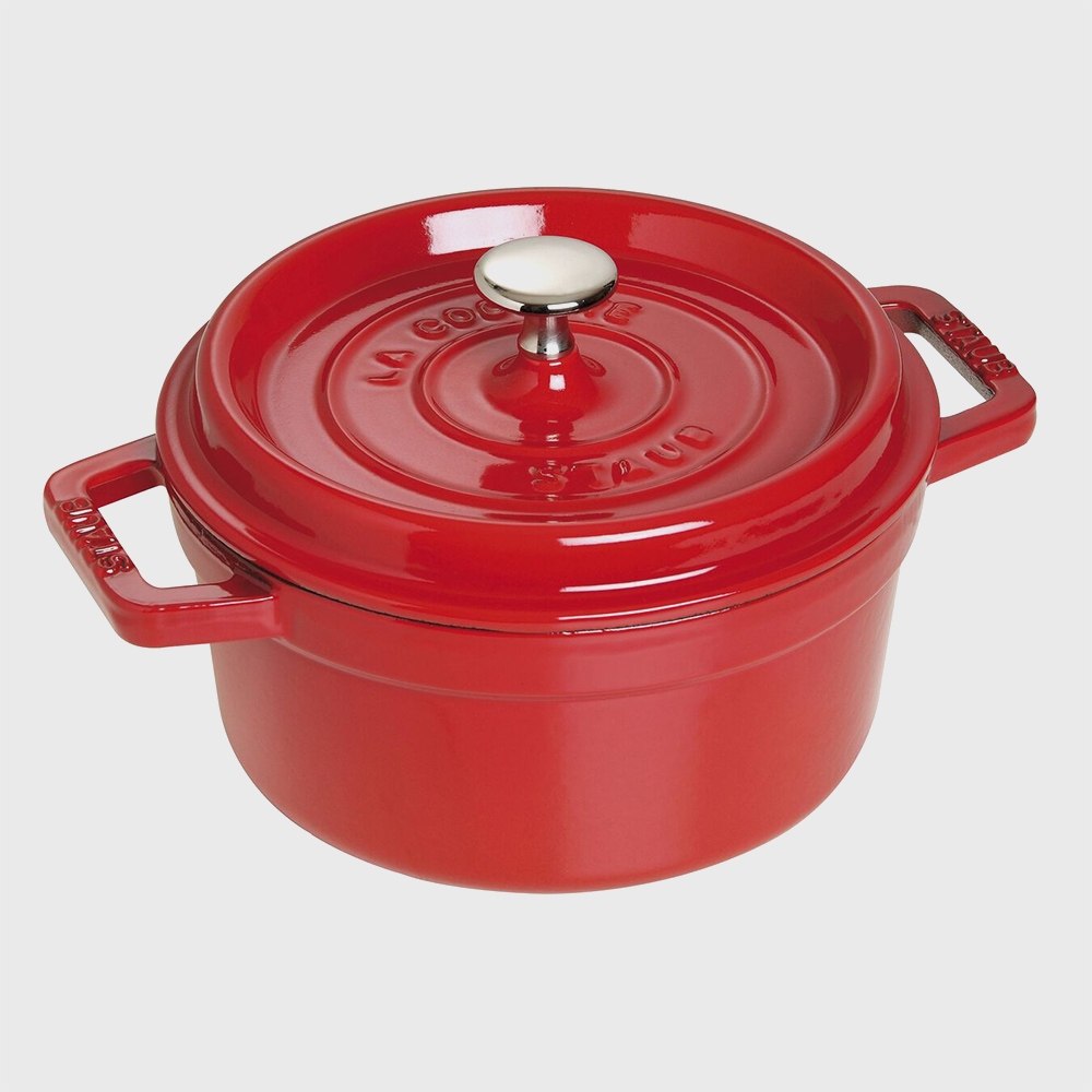 Cocotte rosso ciliegia 22 cm / Preparare un saporito stufato in casa può essere complicato. Per ottenere grandi risultati con il minimo sforzo, utilizzate il pentolame staub della serie la cocotte. La cocotte è fatta di ghisa smaltata dalle eccellenti proprietà termiche. Il calore è rilasciato in modo uniforme in tutta la pentola, per garantire l'omogeneità delle temperature di cottura. La cocotte può essere utilizzata su tutti i tipi di piano cottura e di forno. L’interno smaltato intensifica la cottura lenta facendo risaltare i naturali sapori delle pietanze e creando piatti perfetti e aromatici. La cocotte è fatta in ghisa, un materiale robusto e di facile manutenzione, ed è dotata di pratici manici di ghisa e di un coperchio con un pomello.