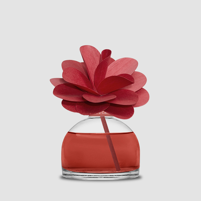 Profumatore d'ambiente in bottiglia di vetro con diffusore a forma di fiore in legno di betulla realizzato a mano. ARANCIO E CANNELLA